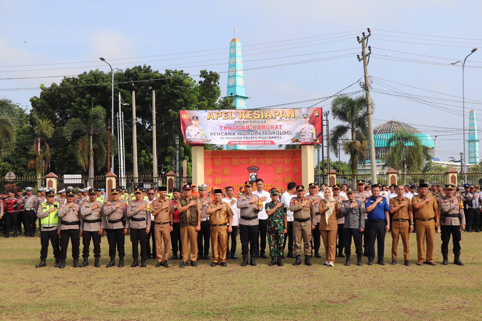 Musi Rawas, Muratarabicara.com-Mengantisipasi potensi bencana hidrometeorologi Polres Musi Rawas menggelar apel kesiapan tanggap darurat Bencana Hidrometeorologi di Wilayah Polres Musi Rawas.