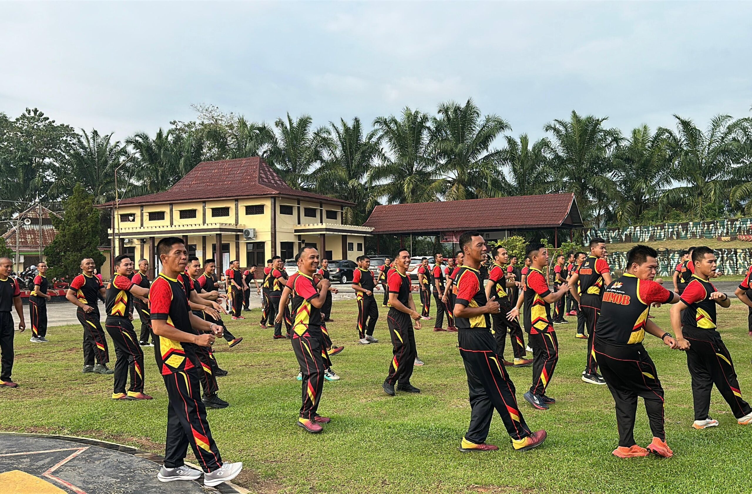 Kegiatan senam bersama digelar di Lapangan Mako Batalyon B Pelopor, Sabtu (27/9/2025) pagi.