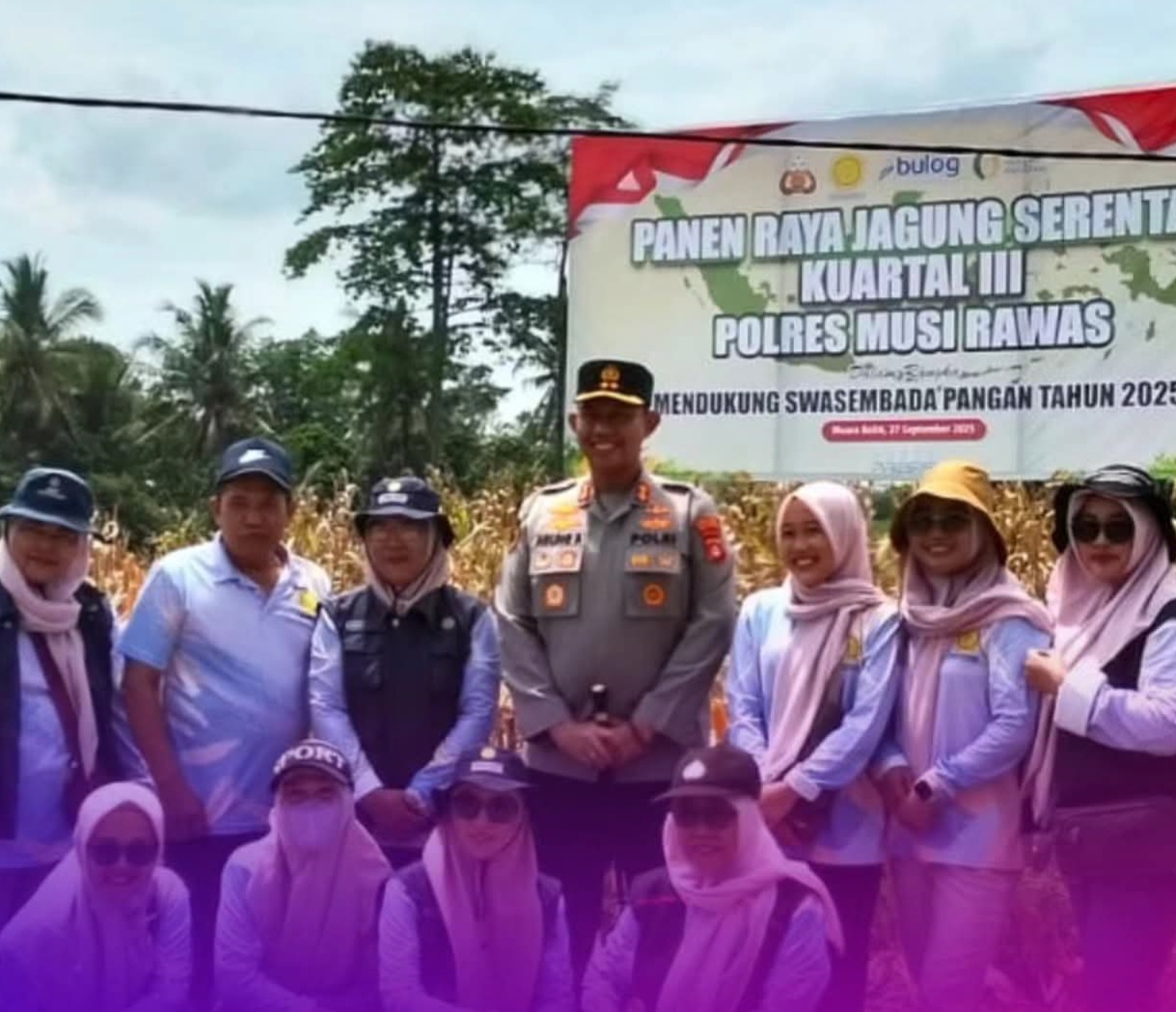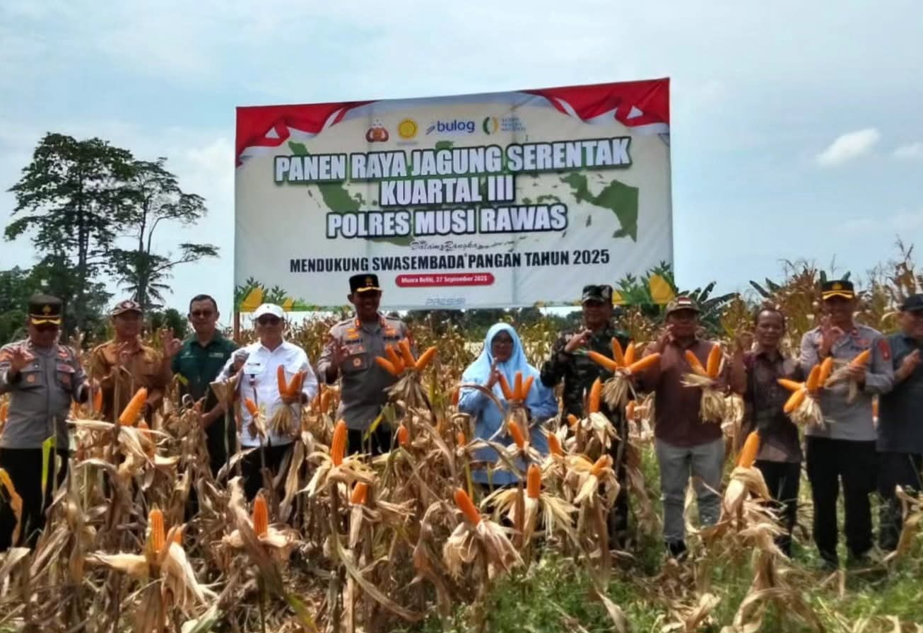 Panen jagung serentak tersebut dilaksanakan di lahan Polres Musi Rawas, Sabtu (27/09/2025).