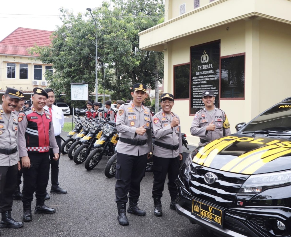Kemudian dilanjutkan dengan pemeriksaan kendaraan dinas roda dua dan roda empat, yang digunakan saat kegiatan patroli serta pengecekan tim negosiator Polres Mura.