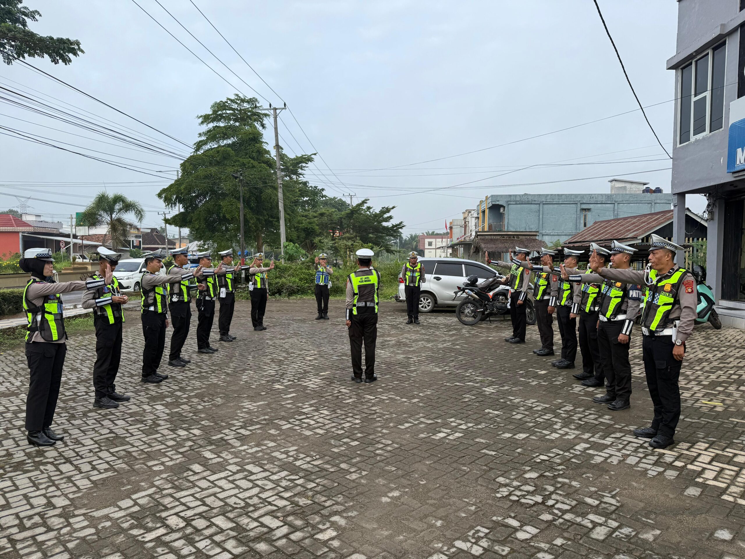Latkatpuan memaparkan materi 12 Gerakan Pengaturan Lalu Lintas, dilaksanakan di halaman Sat Lalu Lintas PolresnMusi Rawas Utara, Rabu (8/4/2026)