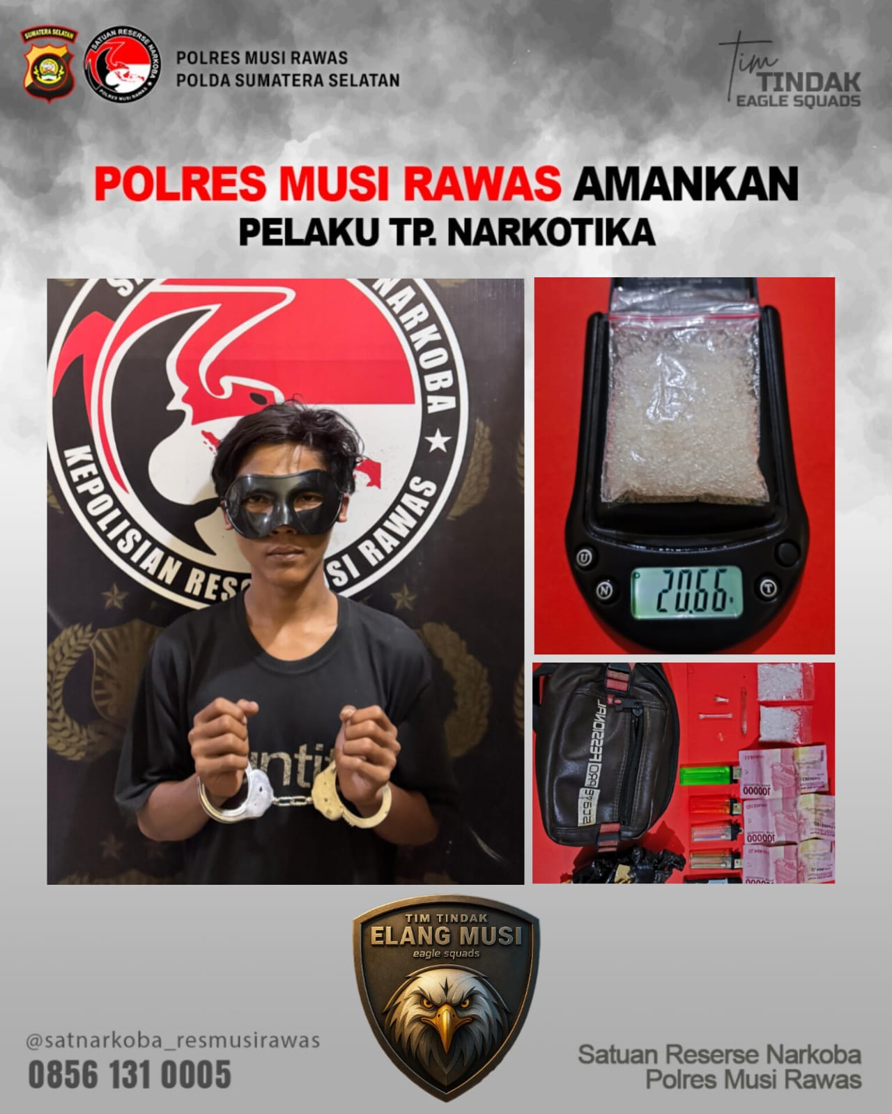 Musi Rawas, Muratarabicara.com-Tim Elang Sat Res Narkoba Polres Musi Rawas berhasil menggagalkan peredaran narkotika jenis shabu di wilayah Simpang Semambang, Kecamatan Tuah Negeri, Kabupaten Musi Rawas.