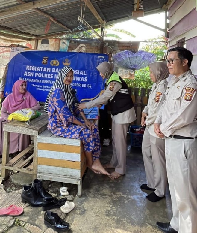 Kapolres menjelaskan, kegiatan sosial ini merupakan wujud kepedulian dan semangat solidaritas anggota KORPRI untuk berbagi kebahagiaan dengan masyarakat yang membutuhkan.