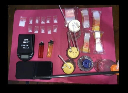 Dari hasil penggerebekan diamankan barang bukti berupa sebelas paket plastik klip bening berisikan kristal-kristal putih diduga Narkotika Jenis Shabu dengan berat Brutto 5,06 gram. Satu unit timbangan digital merk Pocket Scale. Lima Ball plastik klip bening. Lima alat hisap shabu ( Bong ). Dua korek api.