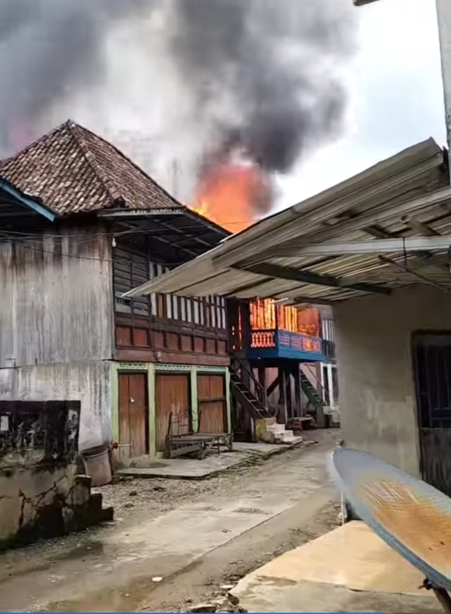 Kebakaran yang menghabiskan tiga unit rumah panggung di Desa Aringin, Kecamatan Karang Dapo, Kabupaten Musi Rawas Utara Senin (12/12) sekitar pukul 10.00 Wib.