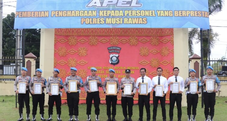 Musi Rawas, Muratarabicara.com-Sebanyak 17 personil Polres Musi Rawas diganjar penghargaan. Penghargaan